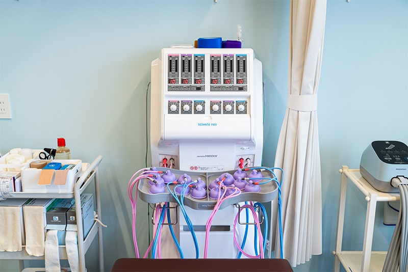 高性能マシンでほぐしたい箇所を治療した後にハンドケア(電気・手技)を行います。全身をしっかり見て欲しい方におすすめです。